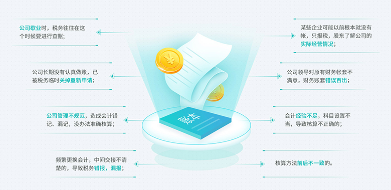 對(duì)混亂不清的亂賬、舊賬進(jìn)行清理和整理,為企業(yè)真實(shí)地反映清理會(huì)計(jì)期間的財(cái)務(wù)狀況和經(jīng)營(yíng)成果;為規(guī)避稅務(wù)風(fēng)險(xiǎn)、減少企業(yè)損失提供規(guī)范的會(huì)計(jì)信息;為企業(yè)向金融機(jī)構(gòu)融資和稅務(wù)辦理涉稅事項(xiàng)提供依據(jù)。(如客戶有特殊需求,專屬財(cái)稅專家可提供上門服務(wù))