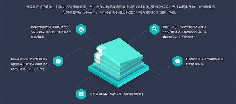 • 標(biāo)準(zhǔn)化梳理舊賬服務(wù)流程,系統(tǒng)性整理企業(yè)舊賬、亂賬梳理